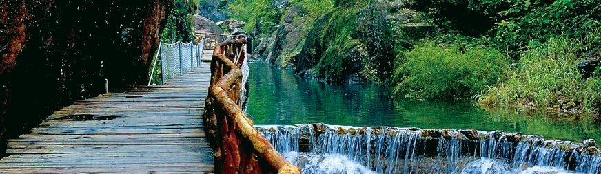 海船木•栈道 :海船木•栈道顺着山谷、贴着溪流、迎着瀑布而建,沿途水色流丽,山岩峻美,空气清新。